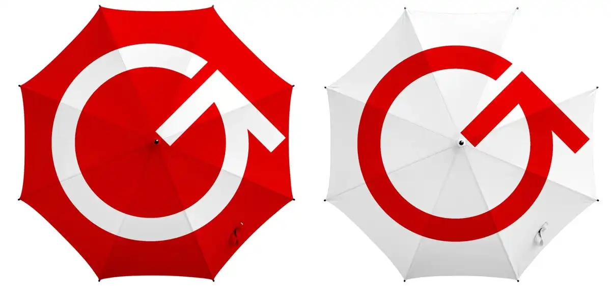 這個(gè)設(shè)計(jì)非常具有創(chuàng)意和獨(dú)特性。它以一個(gè)紅色的圓圈為背景,中間有一個(gè)向上的箭頭,與網(wǎng)絡(luò)中經(jīng)常出現(xiàn)的 loading 圖標(biāo)相似。此外,還可以看到一個(gè)「G」字和數(shù)字「70」。