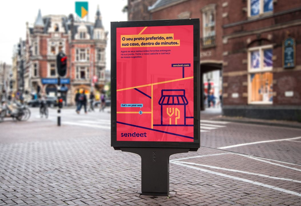 感覺,并迎合不同的口味和選擇。我們還決定創(chuàng)建一個k品牌廣告語,以使用一個常用短語來最好地表達SendEAT的品牌承諾,并使之適應公司的主要服務現實:“隨您吃”。結果就是簡單而充滿活力的餐飲品牌VI形象設計,具有現代的外觀和清晰的信息:我們希望將最好的食物提供給最好的客戶-我們的客戶。我們從訂單經過的城市地圖上獲得了靈感。我們決定對單詞的小寫字母進行模版處理,就好像它們被命令所經過的街道所打斷以達到他們的命運一樣。就像公司的服務一樣,使用了大膽的顏色,以給人以變化和活力的感覺,并迎合不同的口味和選擇。