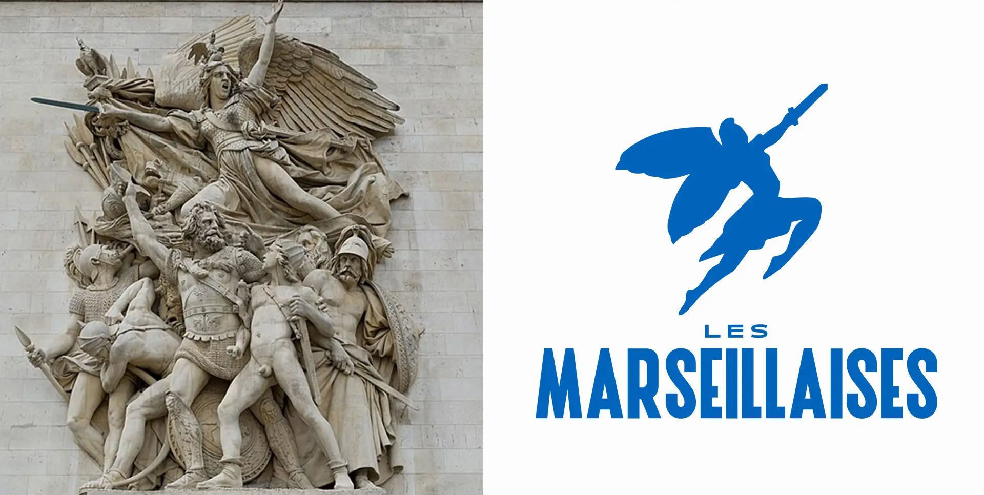 新隊徽在保留傳統(tǒng)色調的基礎上,引入更具動感與包容性的視覺符號。設計靈感來自《馬賽曲》浮雕,通過流暢的線條結構,傳遞力量與優(yōu)雅并存的理念,強化女性運動員的形象特質。