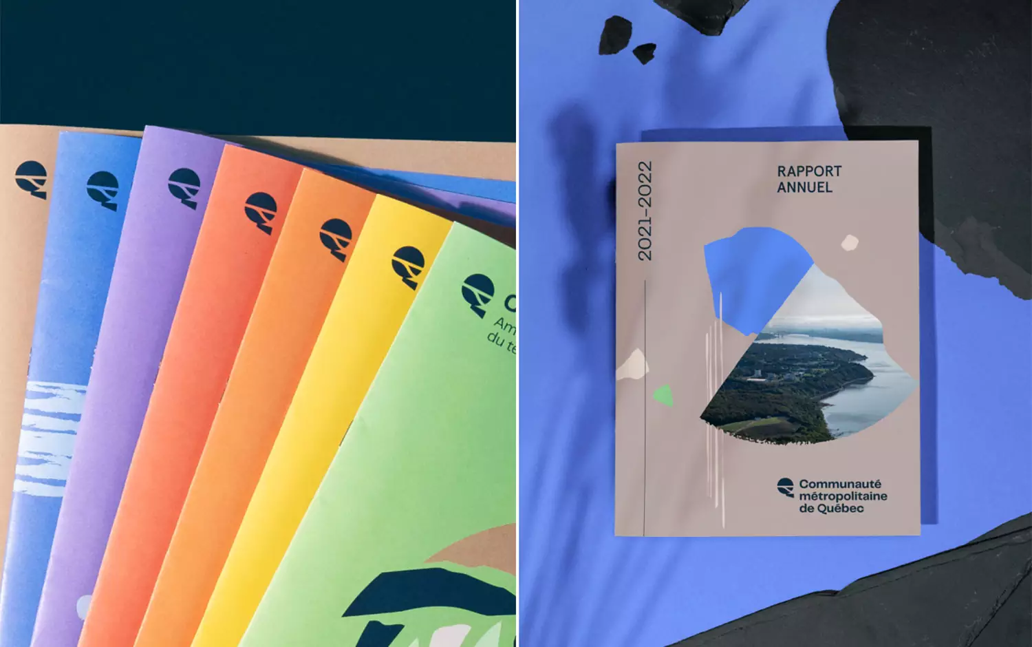 這一改革的標志設計既呼應了其領土,也反映了其充滿活力和包容性的社區(qū)。品牌形象設計中調色板反映了所有這一切,因為它的特點,所有彩虹的顏色在明亮的色調。曼波的創(chuàng)作人員包括許多魁北克風景的傳統(tǒng)紋理和色彩。所有的結合,作為一個拼貼,介入了一些畫筆的插圖。此外,他們提出了精美的海報設計,完美地補充了CMQuéBEC的品牌重塑。