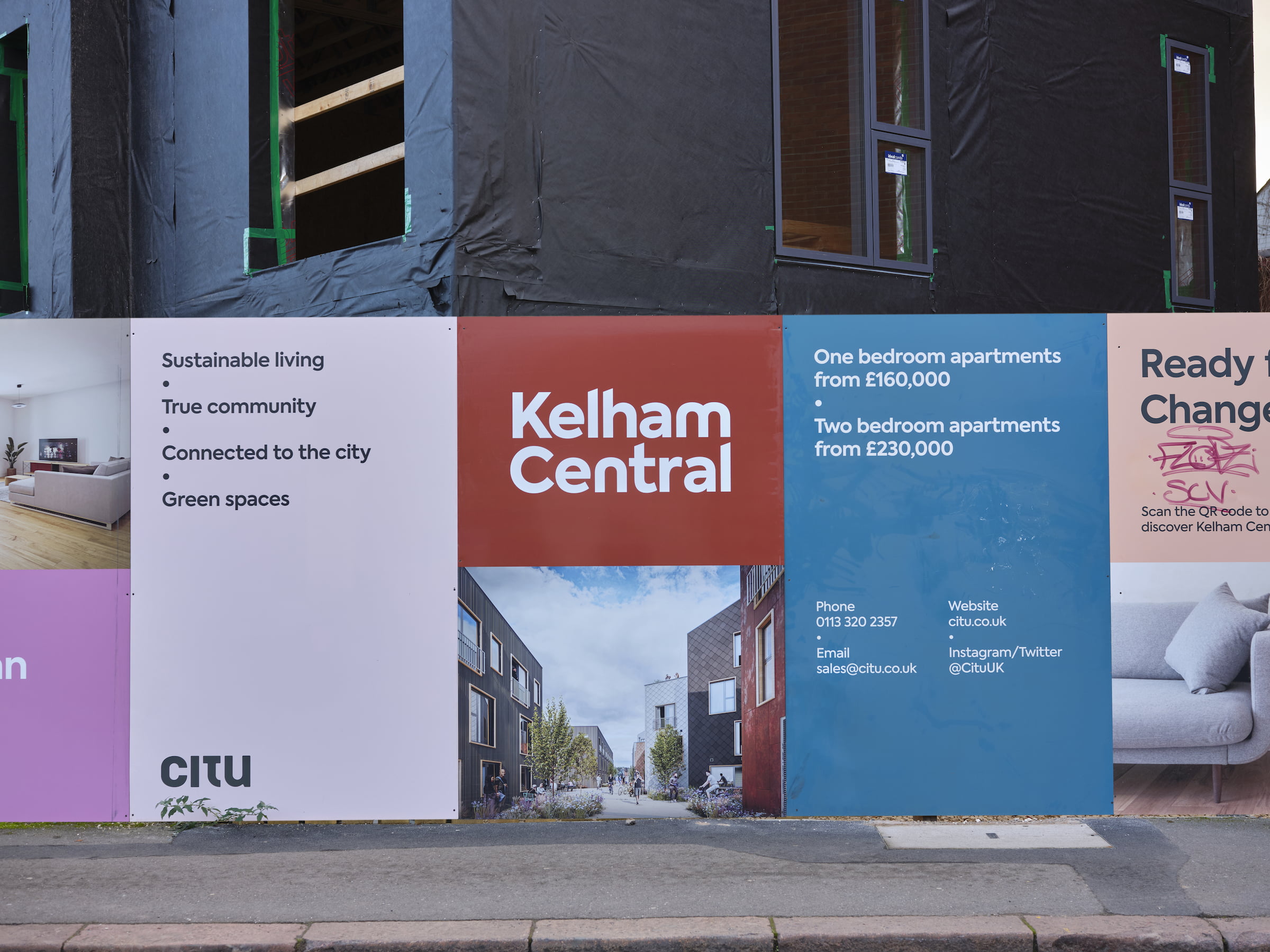 Kelham Central 標(biāo)志設(shè)計(jì)采用定制的排版,受到鋸齒狀工廠屋頂和維多利亞式磚拱門的影響。兩者都是凱勒姆的工業(yè)遺產(chǎn)和 Citu 住宅的獨(dú)特建筑的代名詞。