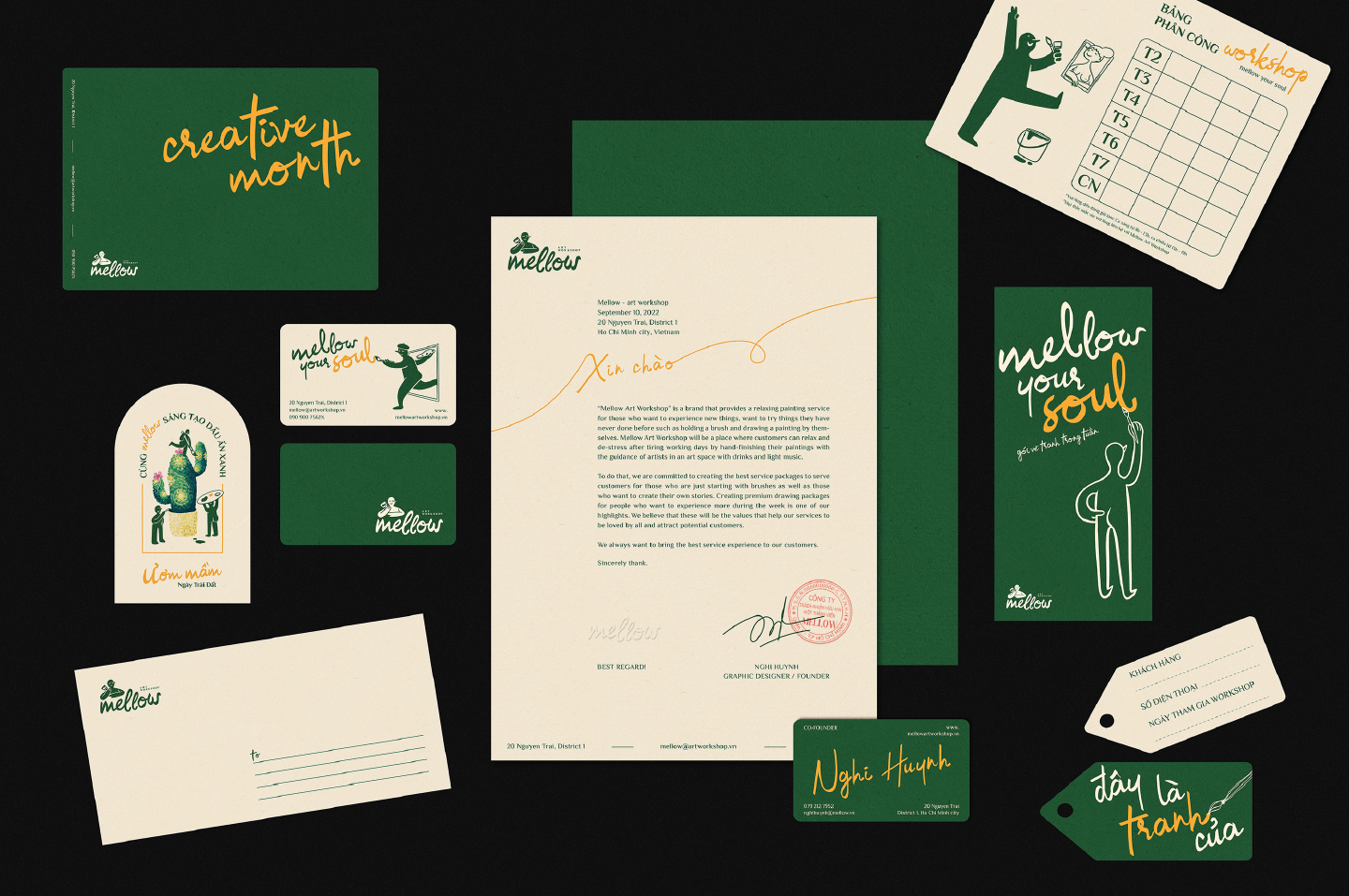 Mellow是越南西貢的一個新品牌形象設(shè)計,提供輕松的繪畫服務(wù)以及周末的輕柔音樂、超靈活的藝術(shù)空間、熱帶飲品等。來到 Mellow 時,您不必成為藝術(shù)家,您所需要的只是對藝術(shù)的興趣和以新方式表達自己的愿望。我們的座右銘是:“無論您的工作如何,客戶在 Mellow 的繪畫體驗質(zhì)量一直是我們的榮幸。”