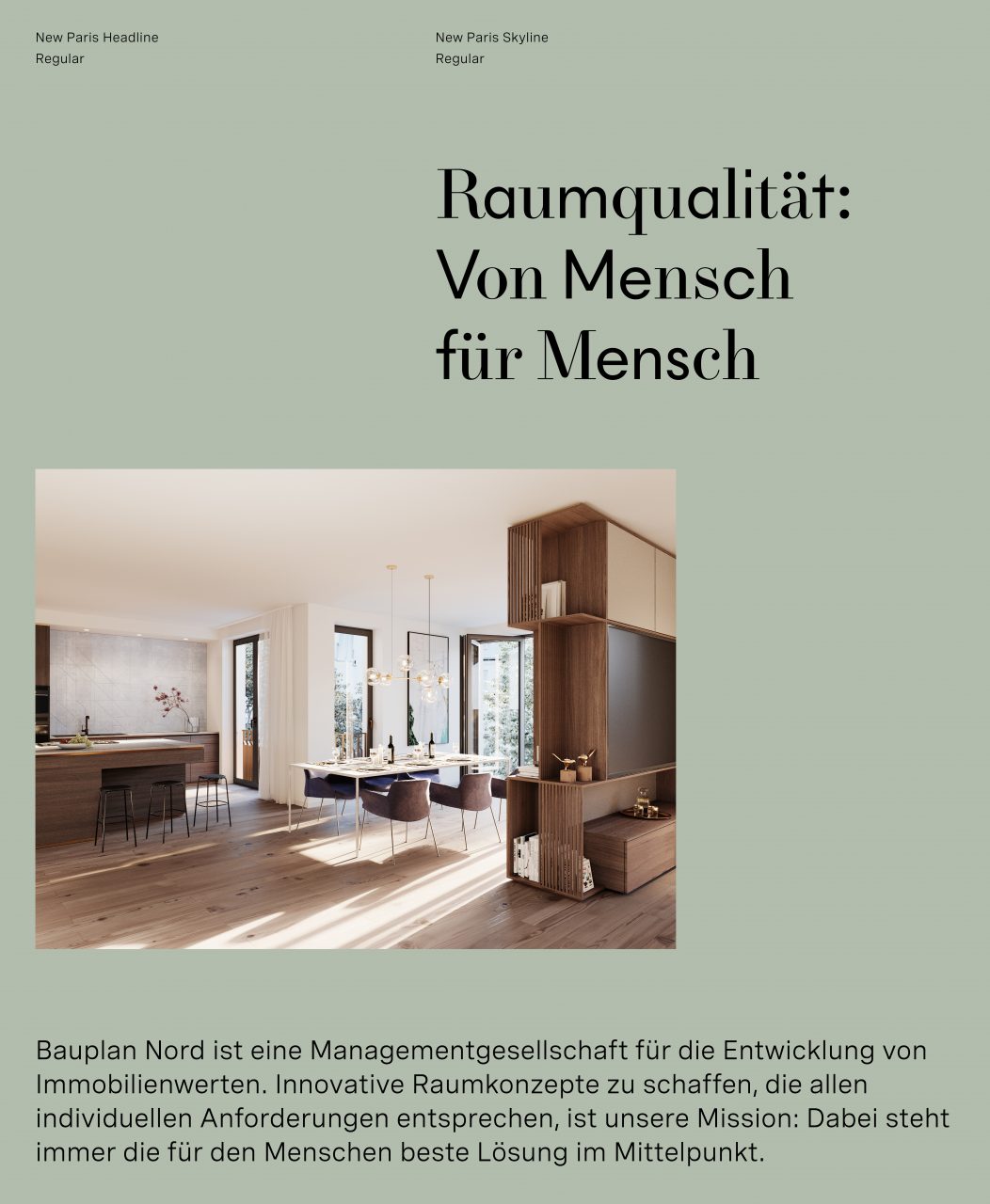 每個單獨的 Bauplan Nord 項目都有自己獨特的企業(yè)設(shè)計,以適應(yīng)代表對象的歷史和位置。可持續(xù)性的理念體現(xiàn)在 Alte Rabenstrasse 3 項目中我們開發(fā)的數(shù)字的使用——首先出現(xiàn)在公司設(shè)計中,后來以入口時鐘和電梯字樣的形式在物業(yè)上展示。VI形象設(shè)計中的配色方案體現(xiàn)了該物業(yè)靠近阿爾斯特和漢堡市中心的位置。該項目的深度和對細節(jié)的關(guān)注在視覺元素中顯而易見,例如逼真和精致的渲染。