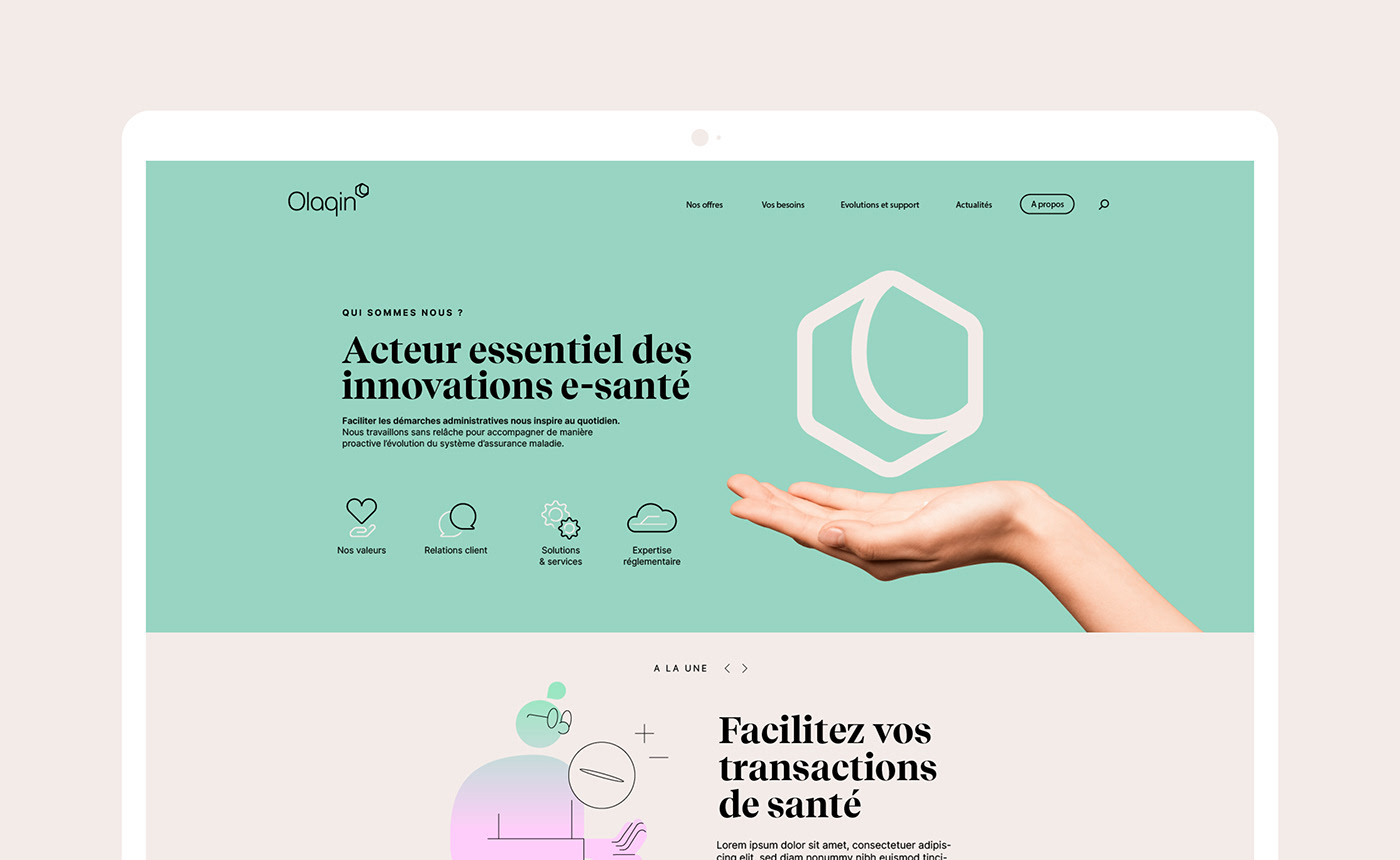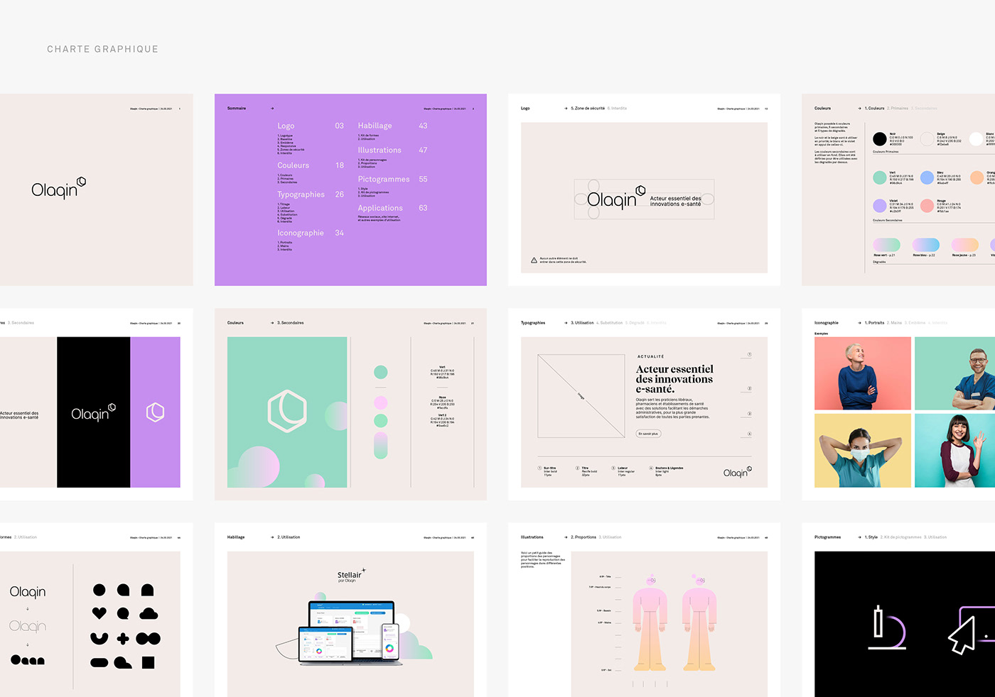 這種形狀詞匯混合了從數(shù)字環(huán)境中提取的醫(yī)學(xué)符號(hào)和象形圖,以最好地代表 Olaqin 的業(yè)務(wù)部門(mén)。