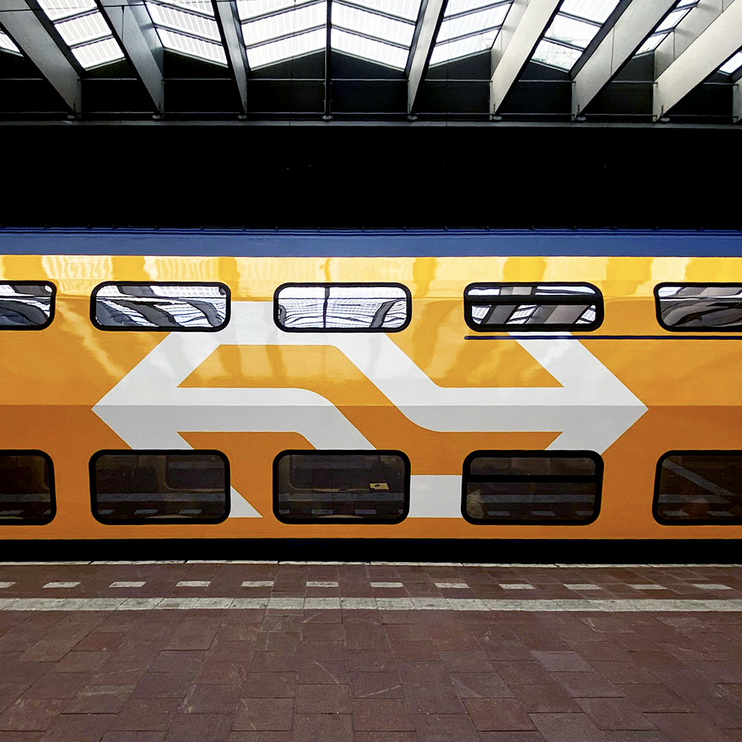 荷蘭鐵路有大量的接觸點(diǎn)和復(fù)雜的治理挑戰(zhàn)。在某種程度上,我們專注于簡(jiǎn)化品牌形象設(shè)計(jì)和執(zhí)行,將身份帶回其核心。接下來(lái),我們將“流程”作為一個(gè)新元素引入。流動(dòng)為身份增添了圓潤(rùn)、溫暖和運(yùn)動(dòng)的有機(jī)效果。顯然,火車是客戶旅程中最關(guān)鍵的部分。 Studio Dumbar 為火車創(chuàng)造了一個(gè)新的設(shè)計(jì)。該設(shè)計(jì)融合了流動(dòng)的理念,使標(biāo)志更加突出和自豪,使火車看起來(lái)更現(xiàn)代、更快捷。雖然目前每種類型的列車看起來(lái)都不同,但從長(zhǎng)遠(yuǎn)來(lái)看,荷蘭鐵路的所有列車都將采用新設(shè)計(jì)