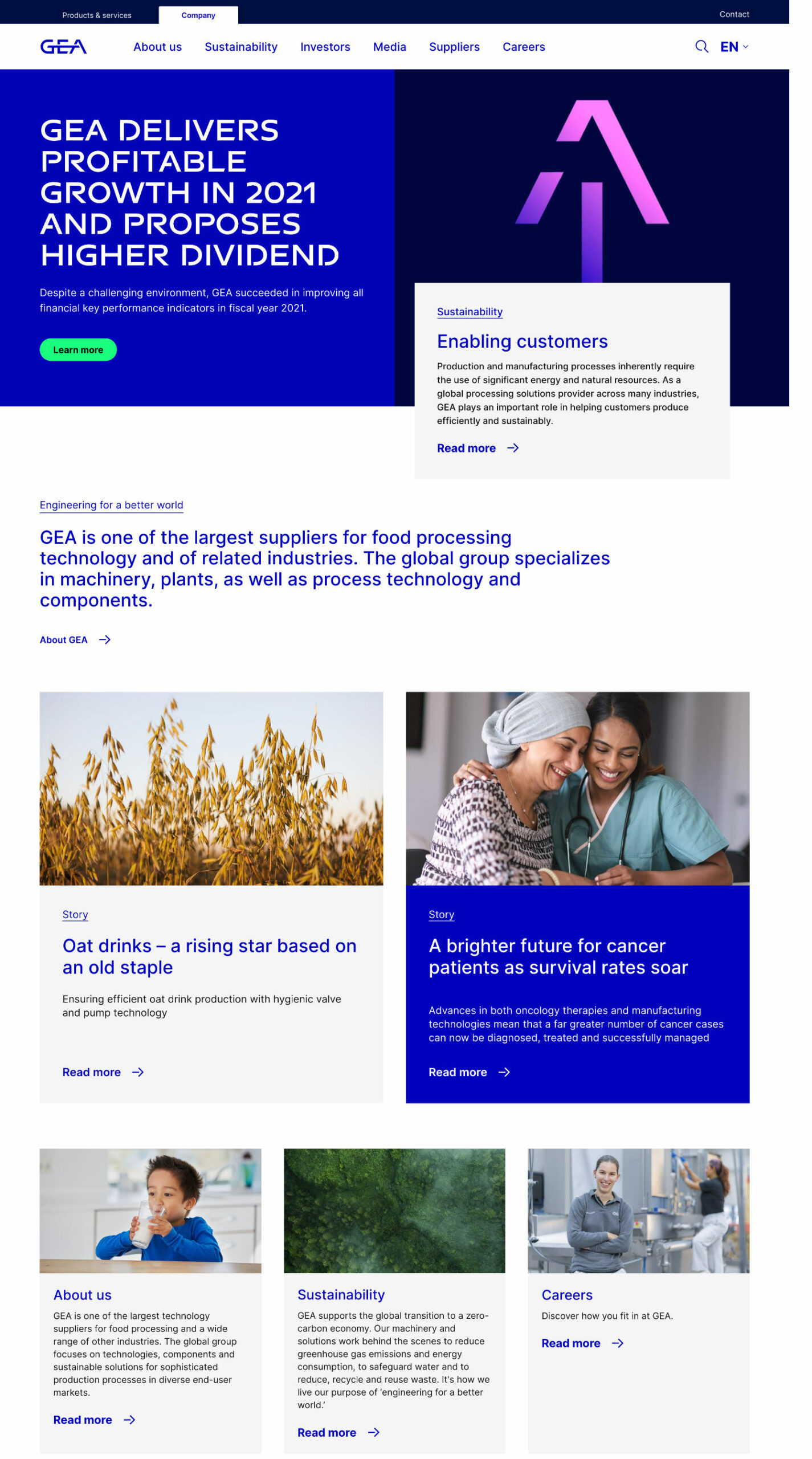 據(jù)該公司稱,GEA 集團(tuán)是全球最大的食品、飲料和制藥行業(yè)系統(tǒng)供應(yīng)商之一。該公司于 2005 年更名為(直到那時(shí)為“MG Technologies”),前身是 1881 年在美因河畔法蘭克福成立的金屬公司。自 3 月初的資產(chǎn)負(fù)債表新聞發(fā)布會(huì)以來,該公司以新的視覺形象設(shè)計(jì)亮相。