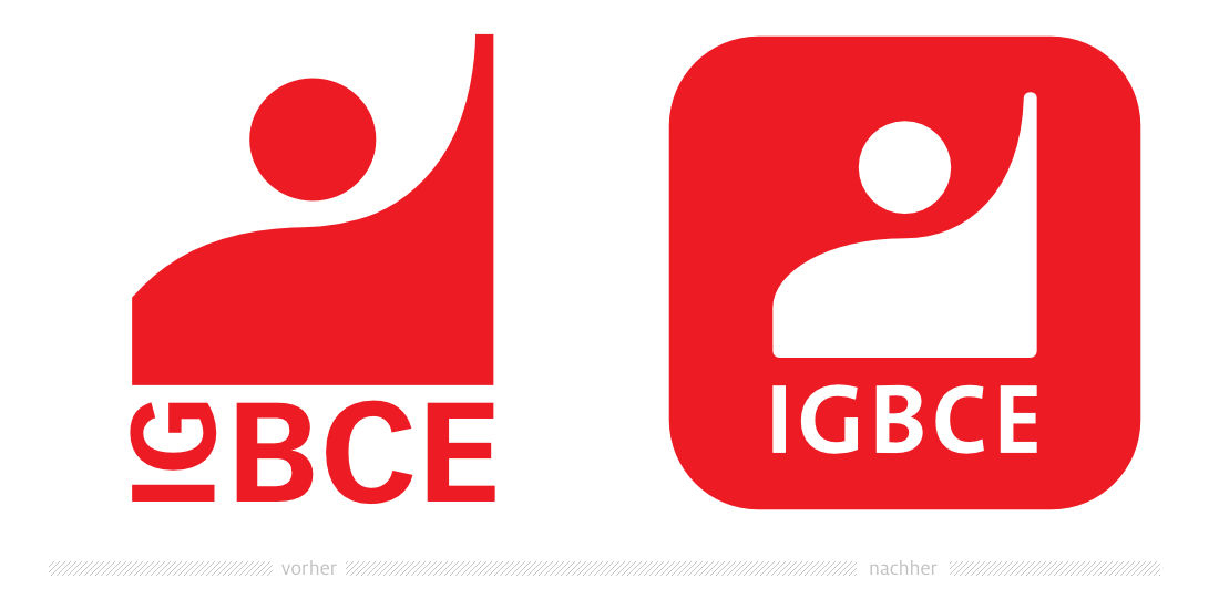 成立于 1997 年的礦業(yè)、化學(xué)和能源工業(yè)聯(lián)盟 (IG BCE) 對其標(biāo)志設(shè)計進(jìn)行了修改。該標(biāo)志于10月底在IG BCE工會大會上正式亮相。然而,當(dāng)時用于字標(biāo)的字體隨后再次更改。