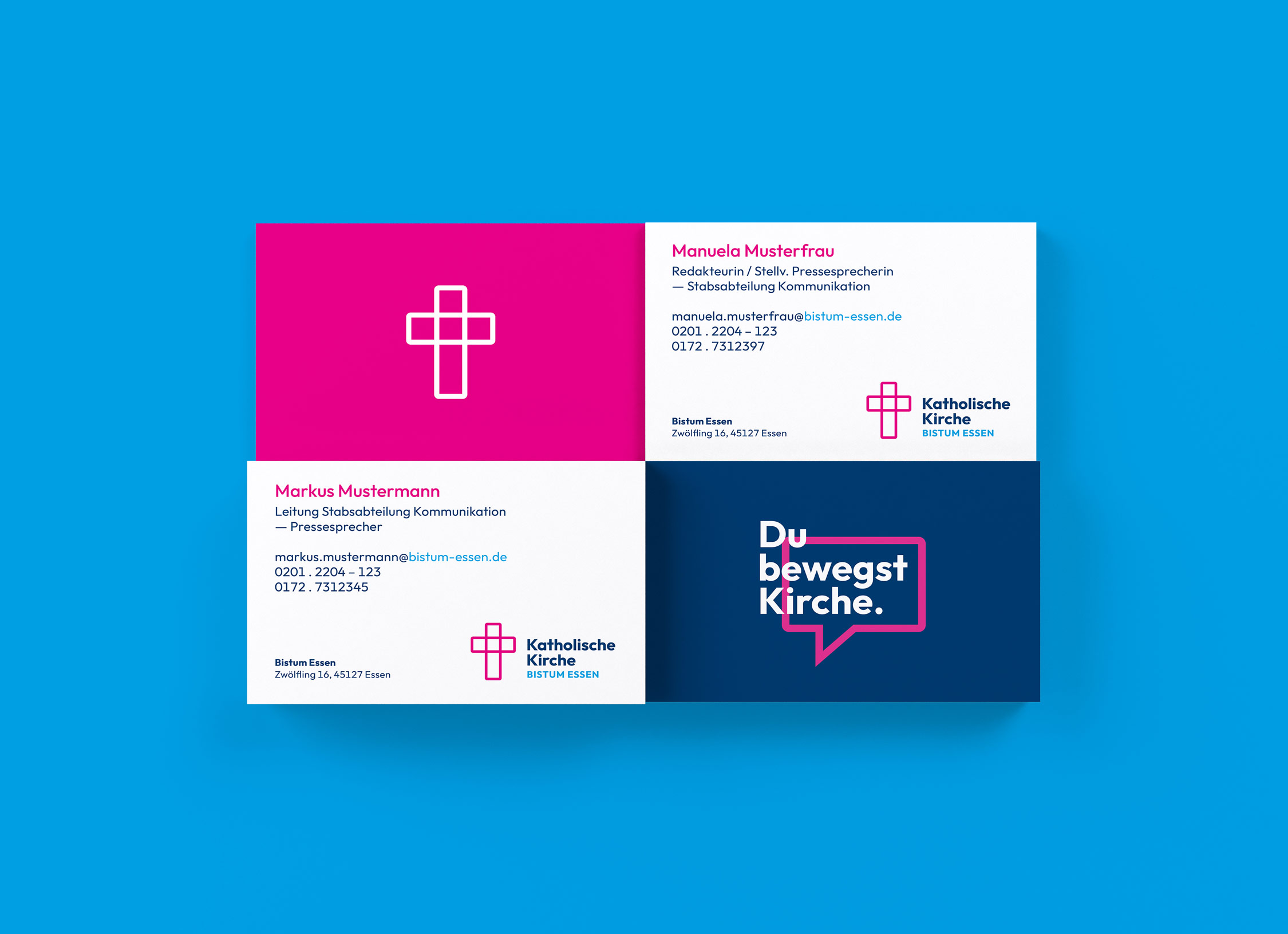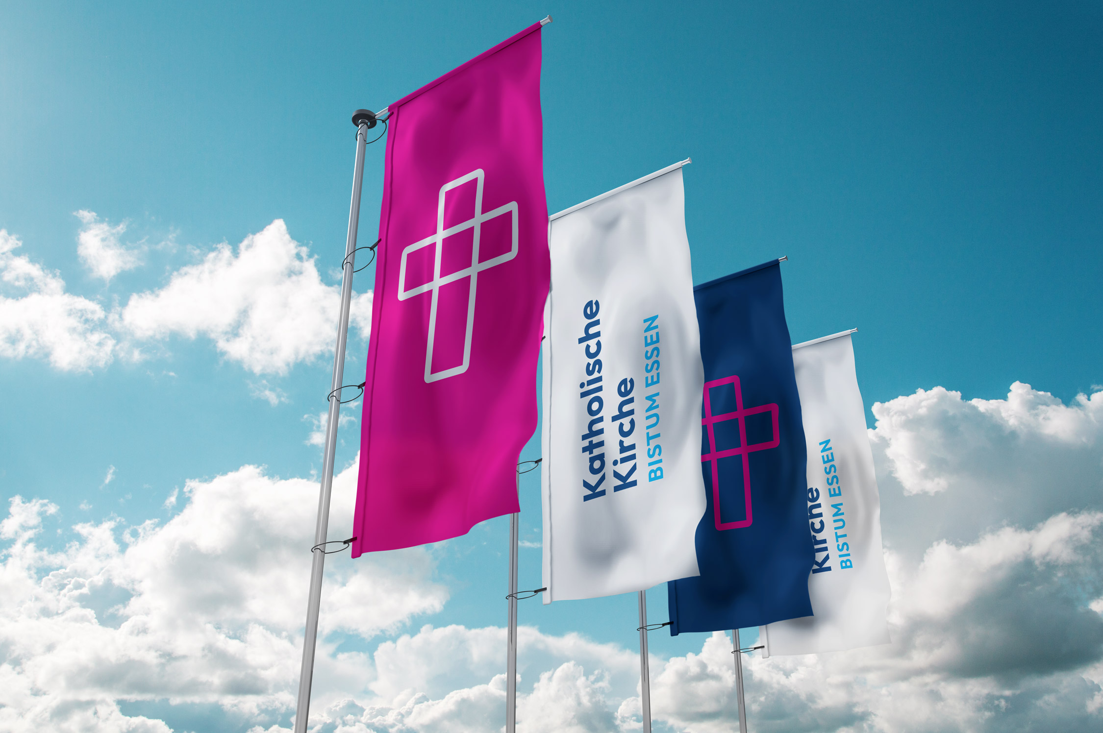 同樣新的是,字母“Bistum Essen”不再是唯一的字標(biāo)?,F(xiàn)在的重點(diǎn)是兩行名稱“天主教堂”。下面是更小的集合名稱“Bistum Essen”。這應(yīng)確保公眾有更好的能見度?!拔覀儾荒茉偌僭O(shè)每個(gè)人都知道教區(qū)這個(gè)詞的確切含義,”副主教克勞斯·普費(fèi)弗解釋說(shuō)。同時(shí),通過(guò)十字架和刻字這種開放和更廣泛的象征意義邀請(qǐng)?jiān)S多組織、機(jī)構(gòu)和教區(qū)為自己采用這個(gè)標(biāo)志?!巴ㄟ^(guò)這種方式,我們很有可能在與我們教區(qū)的整體多樣性的公共交流中變得更加知名,”副主教說(shuō)。