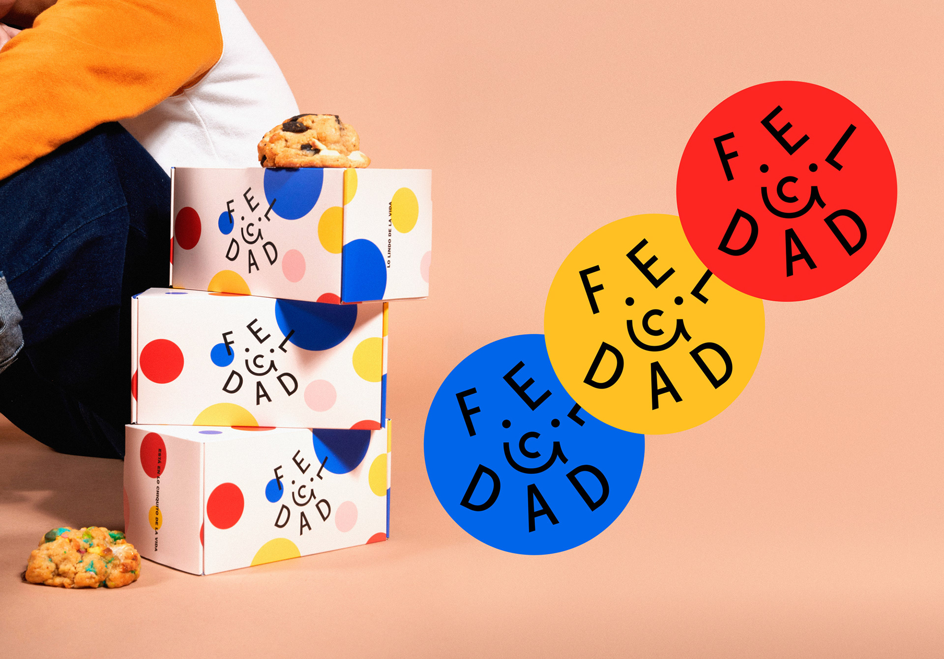 品牌設(shè)計(jì)中我們創(chuàng)建了 cookie 包的超級(jí)符號(hào),其中包含一系列讓人們開(kāi)心的事情。創(chuàng)作過(guò)程的秘訣結(jié)合了一點(diǎn)懷舊、大量的原色和一些童年記憶的烘焙。因此,F(xiàn)elicidad 的品牌標(biāo)識(shí)具有傳染性,就像幸福一樣。