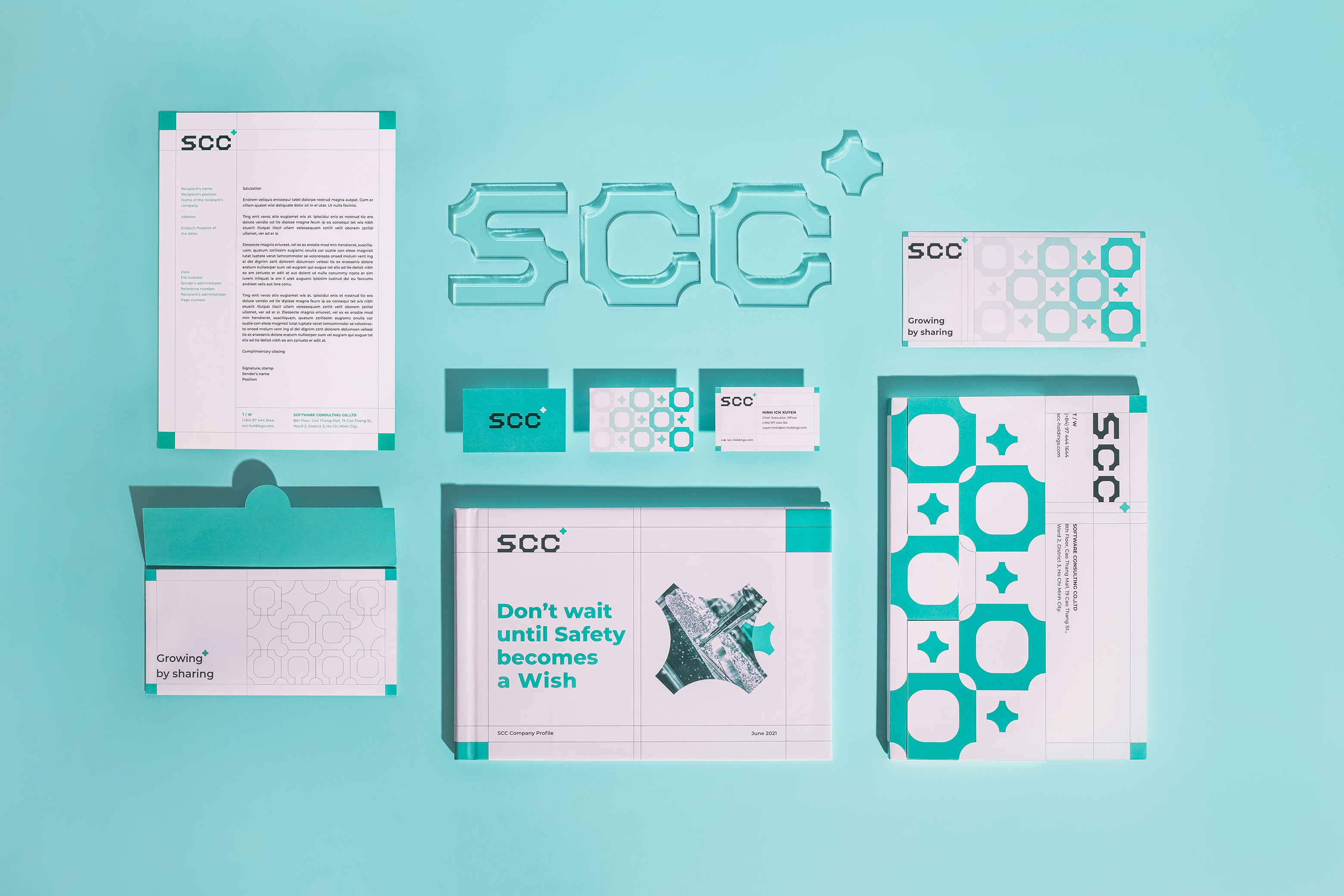 為了建立SCC的身份系統(tǒng),Vu決定從與機(jī)械工程領(lǐng)域相關(guān)的因素中獲取想法。這些因素包括金屬螺絲的外部&建筑中使用的鋁型材的橫截面。這些細(xì)節(jié)不僅表達(dá)了品牌精神,還描述了品牌價(jià)值,為未來(lái)帶來(lái)了新的視角。