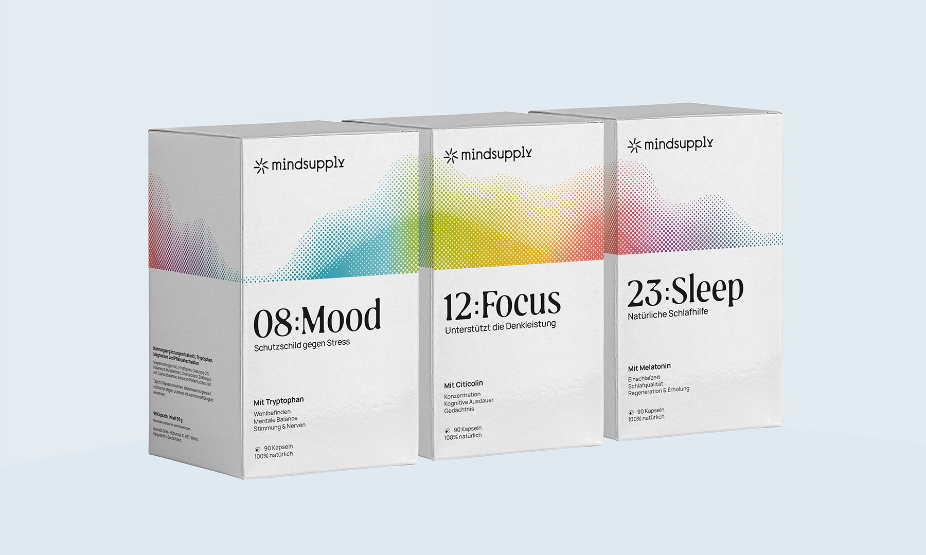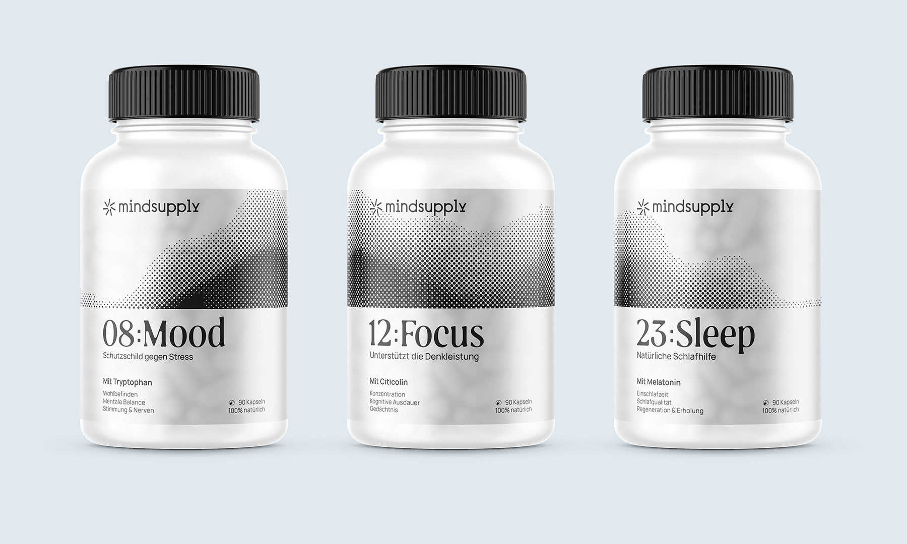 Mindsupply是一種及時(shí)補(bǔ)充大腦營(yíng)養(yǎng)的營(yíng)養(yǎng)補(bǔ)充劑包裝設(shè)計(jì)。Mindsupply的誕生源于一種愿望,那就是把自然的、經(jīng)過(guò)科學(xué)驗(yàn)證的營(yíng)養(yǎng)帶給你周圍的人。讓你的一天有個(gè)好的開(kāi)始,在你最需要的時(shí)候提升你的情緒。為你日程表上最重要的事情找到你的精神焦點(diǎn)。與你的生物鐘保持同步,晚上睡得更好。