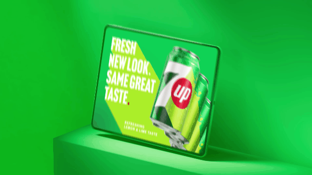 七喜的新標(biāo)志,保留了標(biāo)志性的綠色為底色,同時在長射影部分,增加了深綠色和淺綠色,豐富了視覺色彩。長射影的設(shè)計也具有3D提升感,賦予了標(biāo)志性的“7”動態(tài)的效果。由此更好地捕抓品牌精髓,迎合國際定位。