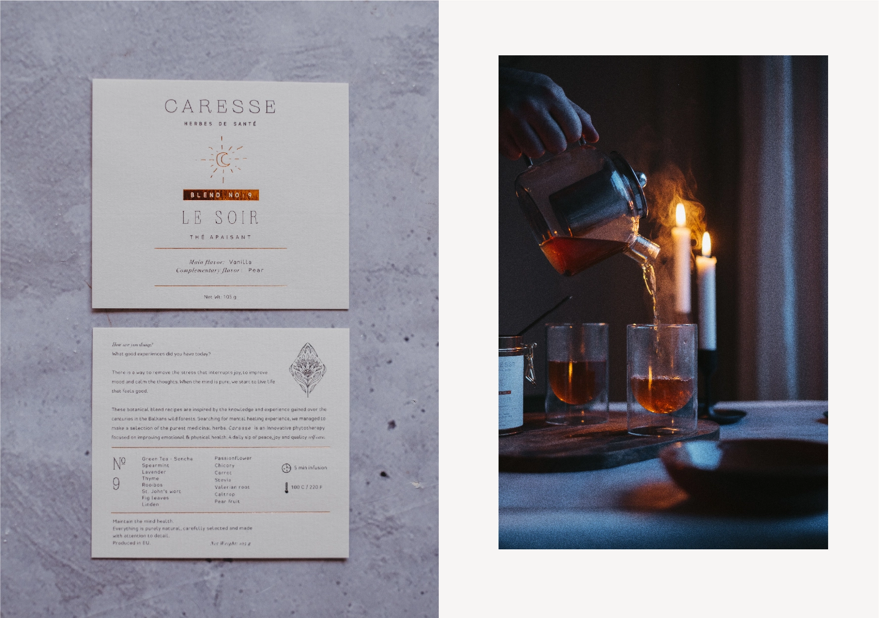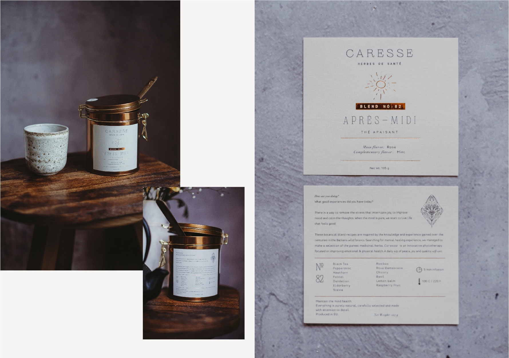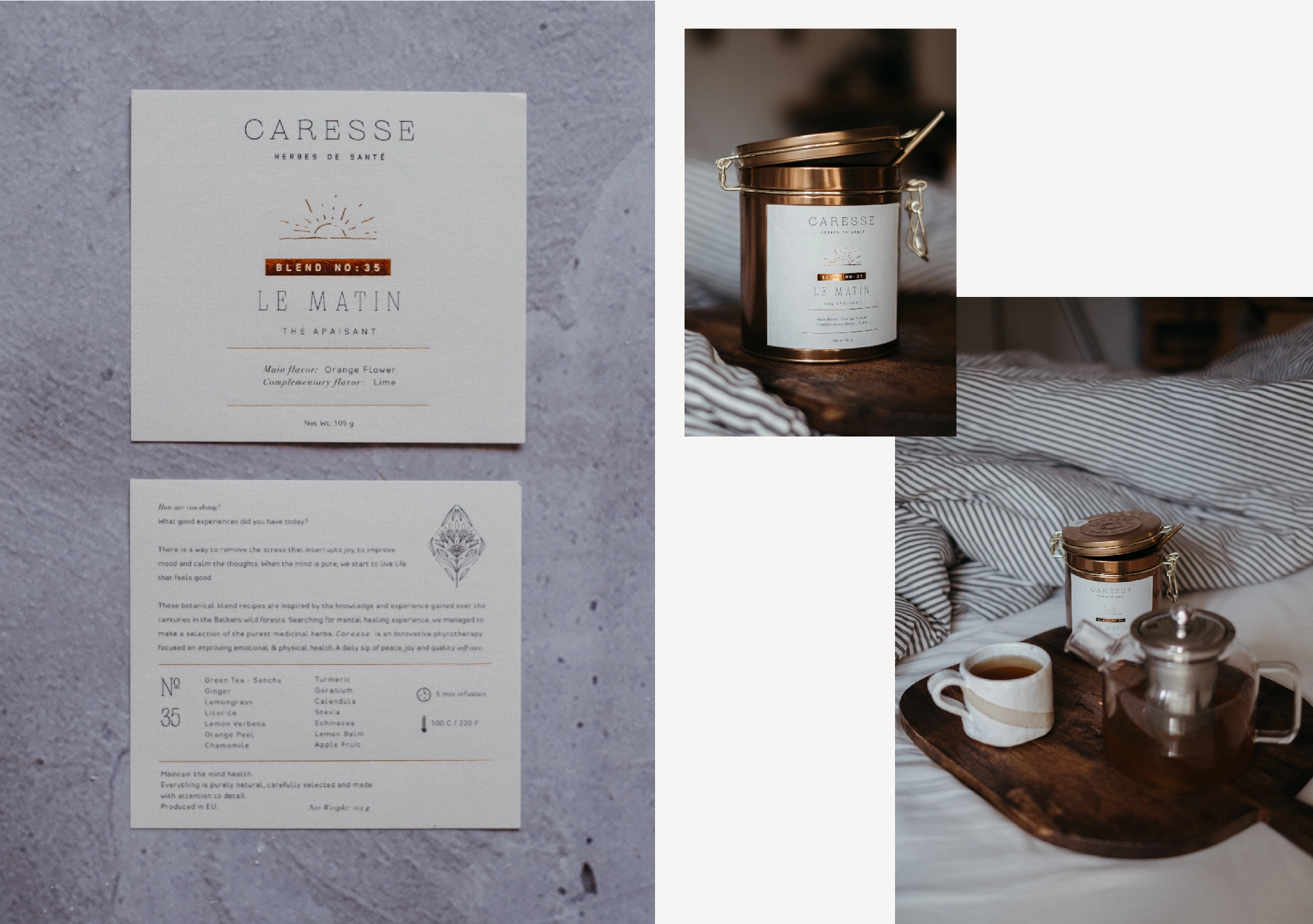 Caresse是一個(gè)草藥愛好者的小團(tuán)隊(duì),他們創(chuàng)造了三種創(chuàng)新的茶配方。使用的草藥在巴爾干山脈瘋狂生長(zhǎng)。產(chǎn)品具有卓越的治療特性和益處,可鎮(zhèn)靜和平衡情緒。該公司的靈感來自法國(guó)的“Savoir vivre”,我們將其理解為能夠過上好日子和智能享受的生活。該品牌將在法國(guó)市場(chǎng)推出。