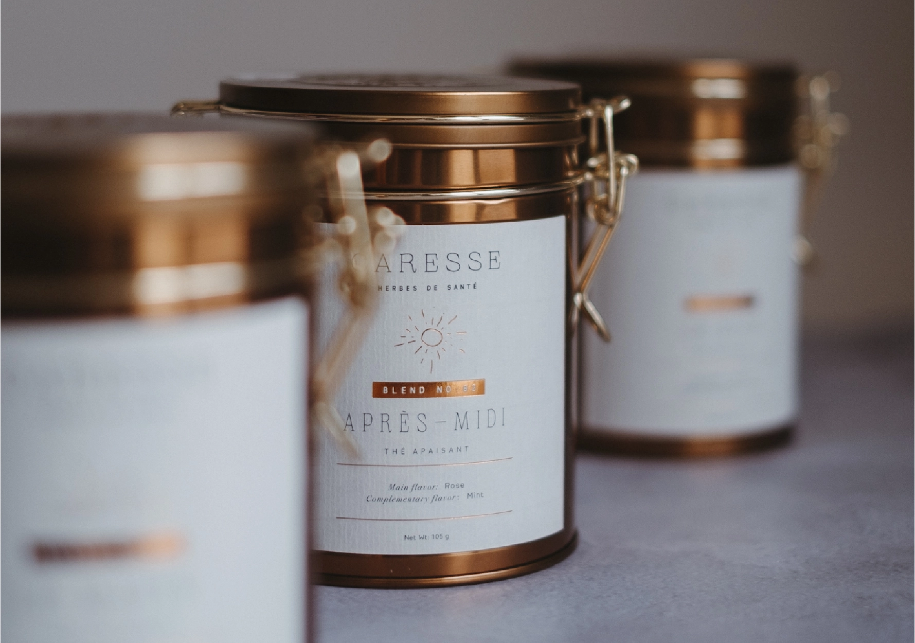 Caresse的目標(biāo)是給人們一種感覺,提醒我們放慢腳步,享受生活,以自然健康的方式減輕壓力和焦慮,帶來整體煥發(fā)活力的新風(fēng)格,并提供高品質(zhì)的茶體驗(yàn)。